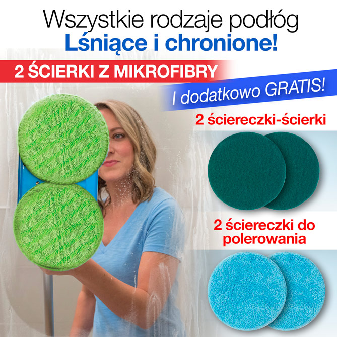 Złóż zamówienie już teraz i otrzymaj niesamowity mop obrotowy Duo Spinner z dwoma ściereczkami z mikrofibry po atrakcyjnej cenie.