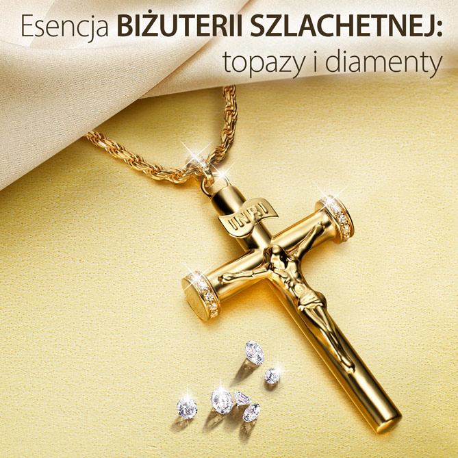 Krzyż to uniwersalny symbol ochrony i nadziei: najczystsze połączenie tego, co fizyczne i duchowe. Od zawsze był ponadczasowym elementem biżuterii, noszonym przez najbardziej eleganckie kobiety i mężczyzn jako znak tożsamości. Dziś pozostaje wyjątkowy: na równi z wielkimi klasykami biżuterii, niezbędny w najbardziej ekskluzywnych szkatułkach. Abyś i Ty mógł dołączyć do tej cennej tradycji, powstał Krzyżyk Esensja - Twój symbol, Twój klejnot przewodni.